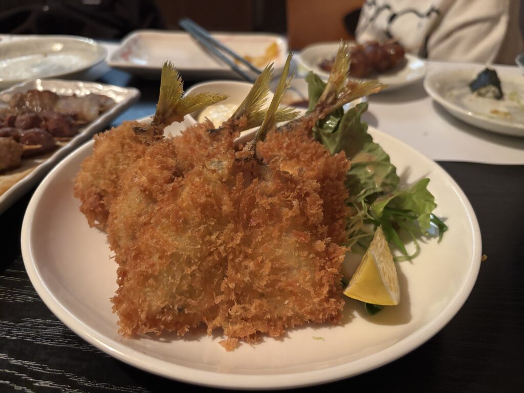 刺身はもちろんのこと、釣ったアジのフライが揚げ方最高で絶品。